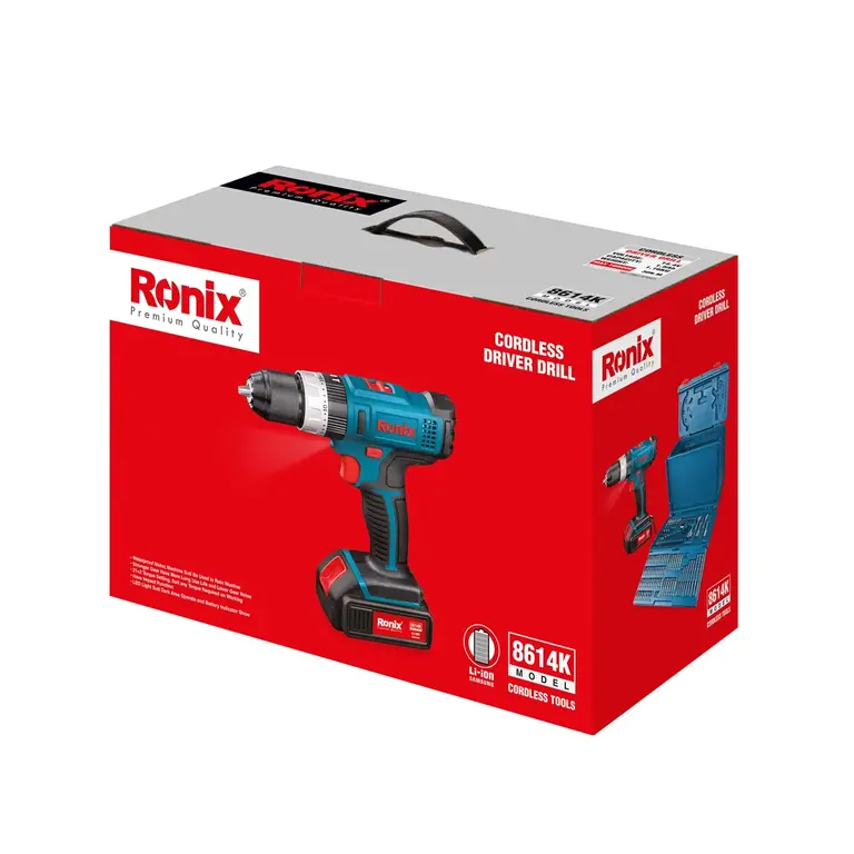 کیت دریل پیچ گوشتی شارژی 8614K رونیکس، مجهز به یک موتور قدرتمند و کلاچ 21 حالته است که دقت فرآیند کار را بالا میبرد. این دریل شارژی رونیکس با طراحی زیبا و ارگونومیک، موجب عدم خستگی دست کاربر در حین انجام کار شده و در انجام تعمیرات، ساخت وسایل مختلف و نیز انجام پروژههای DIY به او کمک میکند.