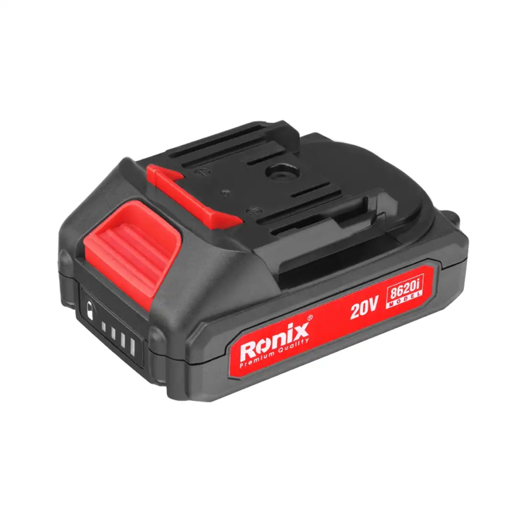 این دستگاه همراه با یک جفت باتری لیتیوم یونی ۲۰ ولت و ظرفیت ۱,۵ آمپر ساعت عرضه میشود که قابلیت شارژ سریع دارد. باتریها کارایی و طول عمر بالایی دارند و در مدت زمان ۵۵ دقیقه بهطور کامل شارژ میشوند. این باتری ALL IN ONE در تمامی شارژیهای 20 ولت سری 86 رونیکس قابل استفاده است.