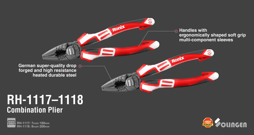انبردست 7 اینچ آلمانی رونیکس مدل RH-1117، برای آن دسته از کاربرانی طراحی شده که در کنار کارایی بالا، به دوام و ارگونومی ابزار نیز اهمیت میدهند. این انبردست با طول ۱۸۰ میلیمتر (۷ اینچ) و دوام بالا، ابزاری کاربردی برای انواع فعالیتهای صنعتی، تعمیراتی و خانگی است.