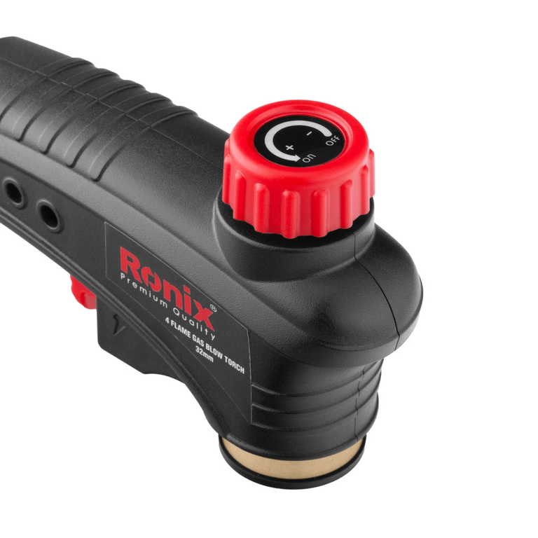 این شعلهافکن رونیکس به راحتی با یک حرکت ملایم انگشت بر روی تنظیمکننده شعله، قابل تنظیم و قفلشدن است. همچنین مجهز به فناوری احتراق پیزوالکتریک خودکار است و میتواند شعلهای با دمای بالا تولید کند. این سری شعلهافکن با استفاده از گاز بوتان و روش احتراق خودکار پیزوالکتریک، بسیار ایمن و کاربرد آسانی دارد. در ادامه به بررسی ویژگیهای سری شعلهافکن ۴ شعله رونیکس میپردازیم.