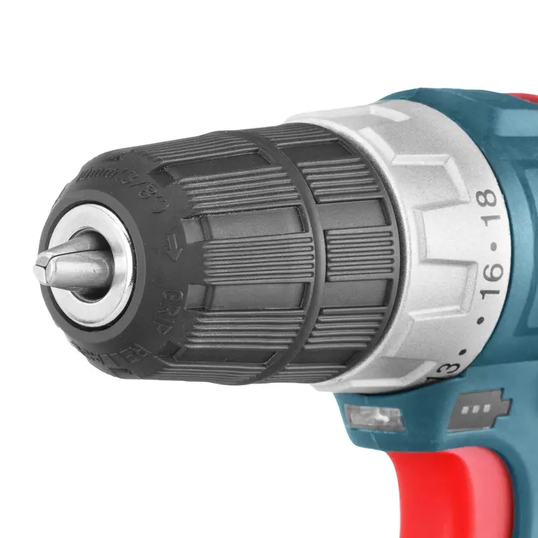 اتوماتیک؛ 10 میلیمتری، فلزی و دو تکه؛ حداکثر ظرفیت سوراخکاری در چوب برابر با 25 میلیمتر و در فلزات 10 میلیمتر است.