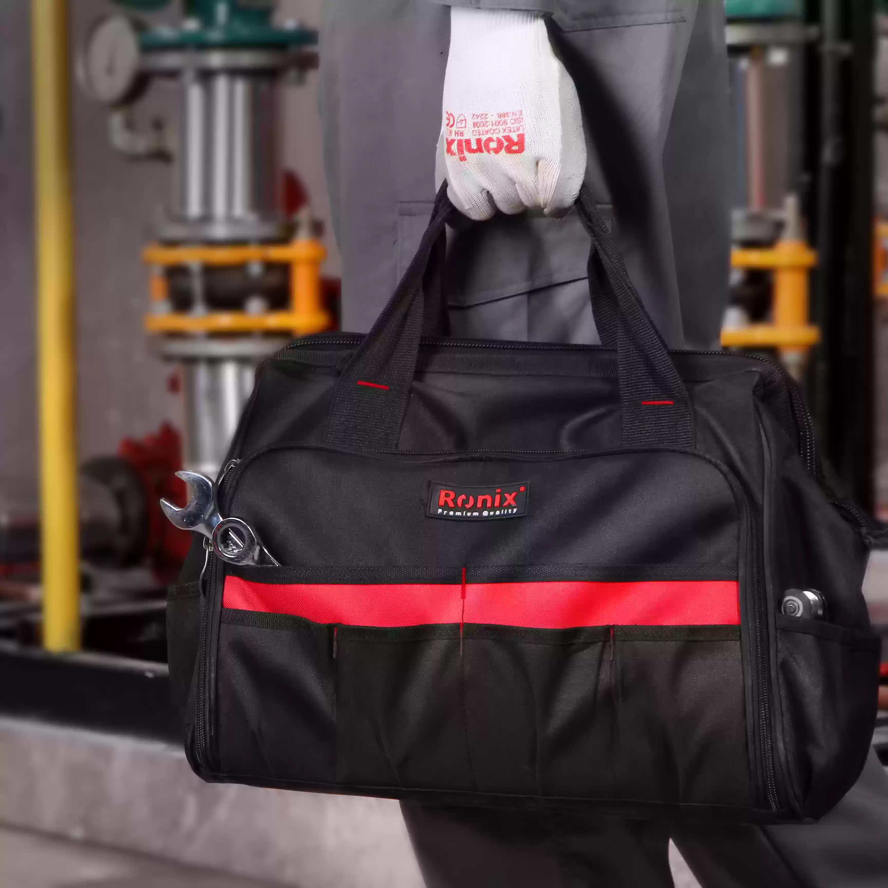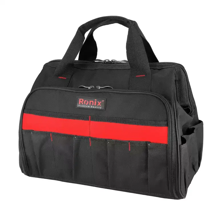 ظرفیت تحمل وزن تا 17 کیلوگرم ظرفیت تحمل وزن تا 17 کیلو گرم جنس پارچه از برزنت دورو با کیفیت بالا استفاده از زیپ کارا با کیفیت صنعتی جهت استفاده مداوم دارای 6 جیب داخلی + 18 جیب خارجی و جداکننده ی 9 عددی آچار استفاده از بند دوشی مقاوم برای کلیه مدل ها جهت حمل و نقل آسان تولید شده از دو لایه درونی و بیرونی جهت استحکام بیشتر و تحمل وزن بالاتر دارای بیشترین تعداد جیب های داخلی و خارجی جهت جایگذاری انواع ابزار آلات استفاده از بهترین کیفیت برزنت دورو جهت طول عمر بیشتر و مقاومت در برابر کشش و انباشت ابزار آلات