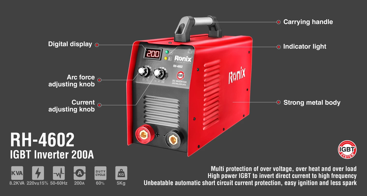 + با اینورتر جوشکاری 4602-RH پاور پلاس رونیکس، با الکترود سایز 5 و 200 آمپر واقعی بیوقفه جوشکاری کنید!