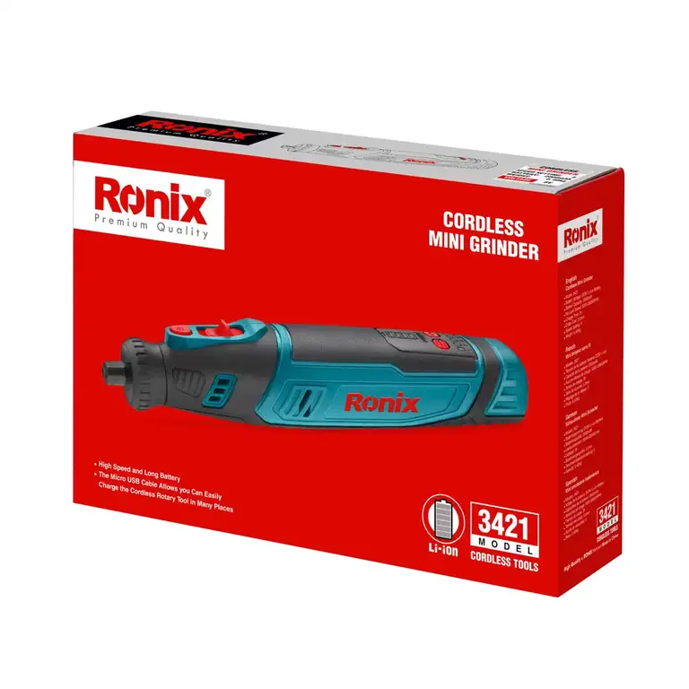 محصول 3421 رونیکس نیز از این قاعده مستثنی نبوده و بدنهای جمعوجور و خوشدست با تنها 0.4 کیلوگرم وزن دارد که با رابر ضد تعریق و ضدلغزش روکش شده و در برابر انواع ضربات و سقوط احتمالی از دست کاربر بسیار مقاوم است. در بخش توضیحات محصول، بیشتر با فرز مینیاتوری شارژی 8 ولت رونیکس مدل 3421 آشنا شوید.