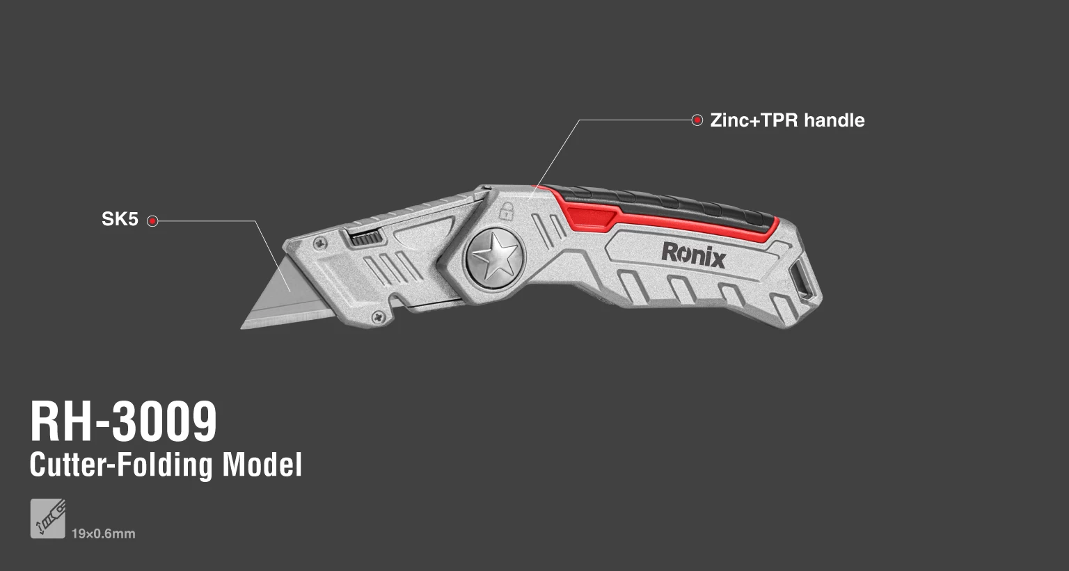 در بخش توضیحات محصول، با مشخصات کاتر ذوزنقهای تاشو 19 میلیمتری RH-3009 رونیکس آشنا شوید.