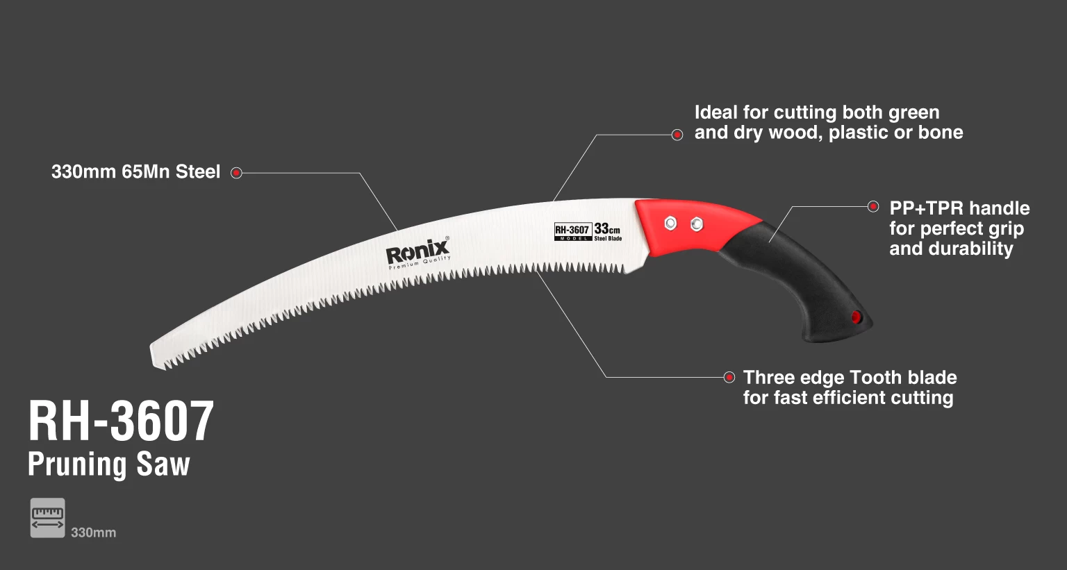 مجموعه ابزارهای باغبانی رونیکس با کیفیت فوقالعاده و تنوع بینظیر طراحی و تولید شده و به بازار ابزار ایران و جهان عرضه میشوند. اره باغبانی تاشوی رونیکس با مدل RH-3607 یکی از ابزارآلات مهم و پرکاربردی است که در فعالیتهای کشاورزی و باغبانی مورد استفاده قرار میگیرد.