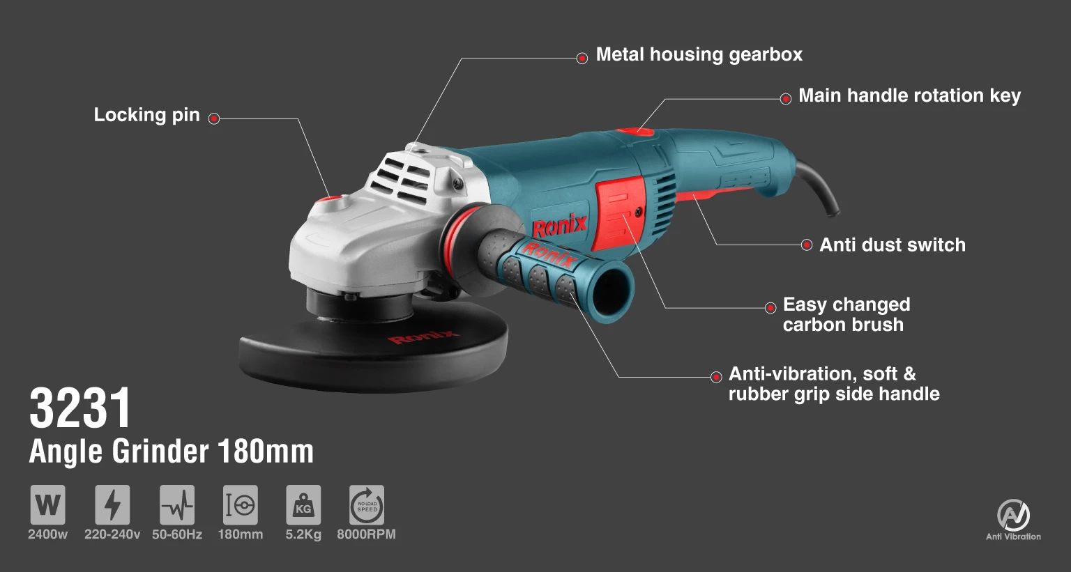 -مجهز به دسته فایبر گلاس با روکش لاستیکی ضد لغزش که انتقال لرزش به دست را به حداقل میرساند