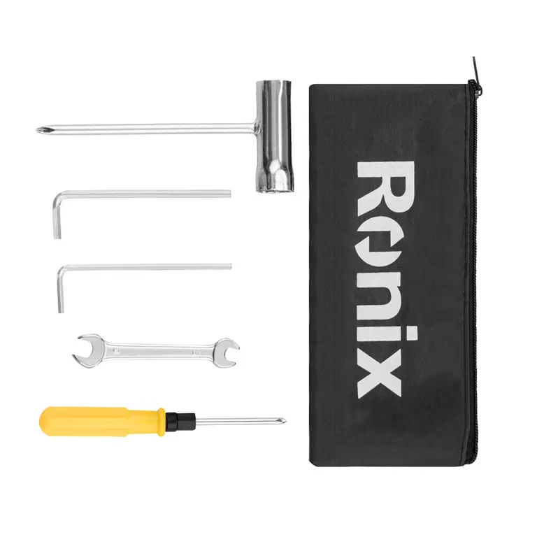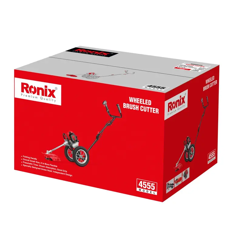 ارائهشده در جعبه رنگی رونیکس همراه با یک جفت چرخ، تیغه نخ نایلونی، محافظ، بطری سوخت، کیف آچار
