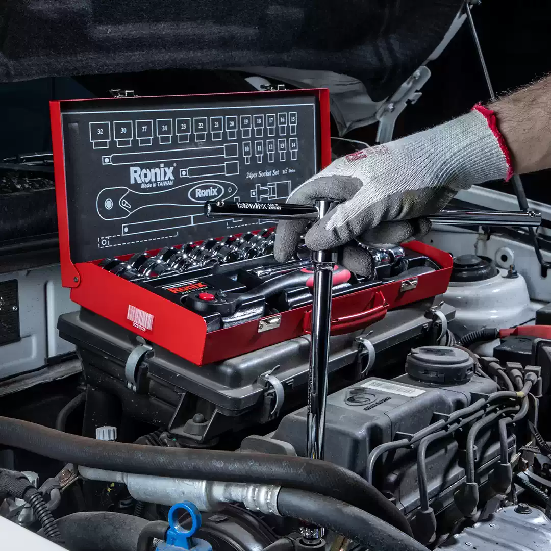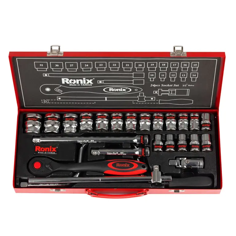 مجموعه بکس 24 عددی رونیکس مدل RH-2624 مجموعه ای دارای 24 قطعه، ساخته شده از مواد باکیفیت سخت کاری شده با گشتاور بالا می باشد. این ست دارای سوکت های فولادی از جنس کروم وانادیوم با مقاومت و استحکام بالا است که با کروم شفاف آینه ای روکش شده اند تا در برابر زنگ زدگی و خوردگی مقاوم باشند. لبه سوکت ها در این محصول به دقت تراش خورده اند که این ویژگی با ایجاد اندازه های دقیق و انتهای مورب در سوکت ها، قرار دادن بکس بر سطح کار را آسان نموده و از خود دستگاه و سطح کار در برابر آسیب حاصل از لبه های تیز سوکت محافظت میکند.