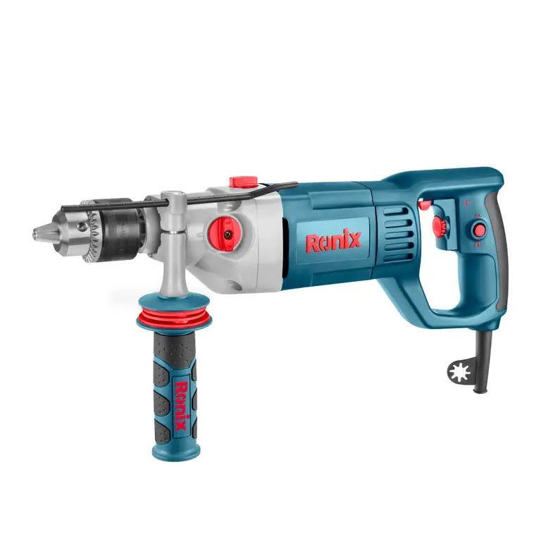 - این دریل چکشی دارای قدرت 1100 وات و حداکثر ظرفیت 45000 ضربه بر دقیقه و 2800 دور بر دقیقه است که ضربات قدرتمند آن قادر به تخریب یک لایه بتنی می باشد. - دسته های مته چکشی لرزش گیر هستند که به دستگاه اجازه می دهد ضربه ها را جذب کند و خستگی را حتی در حین کار سنگین کاهش دهد. دسته های نرم دستگاه مانور بهتری را برای اطمینان از در دست داشتن ابزار فراهم می کند. - مته چکشی به دلیل داشتن 3 حالت عملکرد برای کاربردهای بیان شده، ایده آل است: سوراخ کاری (چوب تا 40 میلی متر و فلز 16 میلی متر)، سوراخ کاری با ضربه (بتن یا آجر تا 26 میلی متر)، حفاری با متعلقات رایگان که امکان سازگاری خوبی را حتی برای کار روی زمین مانند جدا کردن کاشی ها، فراهم می کند. - مکانیزم اعمال ضربه مجهز به یک درایو با سرعت متغیر است، به طوری که سرعت حفاری را می توان به راحتی تنظیم کرد. همچنین می توان از آن در عملیات مداوم برای تسهیل حفاری در مواد با سختی زیاد استفاده کرد.