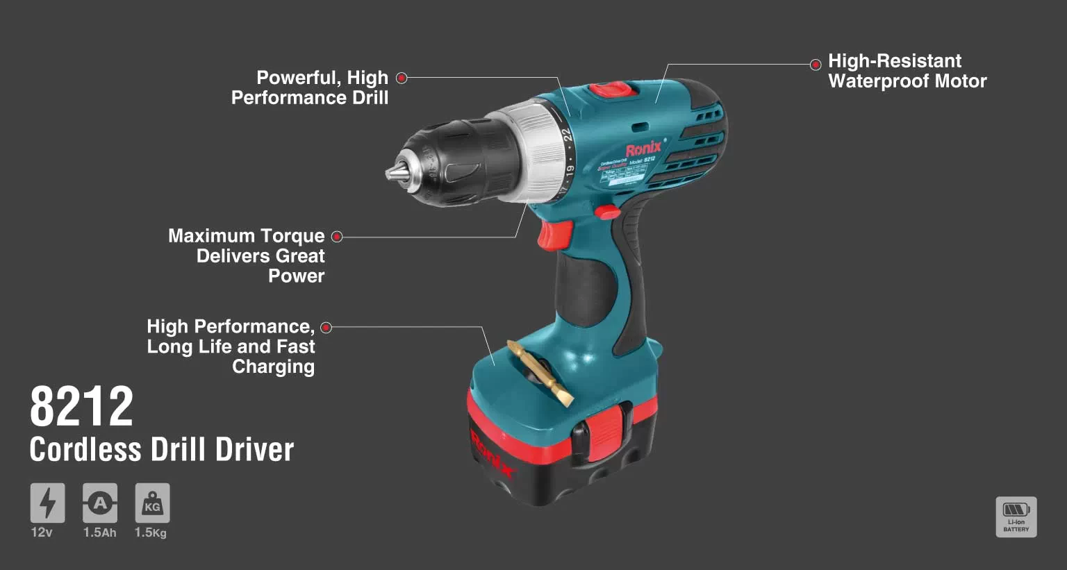 دارای 2 عدد باطری مجهز به سری پیچگوشتی دو سر مجهز به باطری Ni-Cd ساخت تایوان دارای سه نظام اتوماتیک تمام فلزی دارای کیف BMC مقاوم در برابر ضربه استفاده از کلید ضد غبار با کیفیت مطابق با استاندارد TUV مجهز به چراغ LED جهت کارکرد بهینه در محیط های کم نور و تاریک دارای شارژر مجهز به بورد الکترونیکی پیشرفته دارای قطع کن هوشمند مجهز به گیربکس دو دور صنعتی جهت افزایش اثر بخشی کارکرد حین پیچ کاری و سوراخکاری در صنایع مختلف دریل پیچ گوشتی شارژی 12 ولت مجهز به موتور پر قدرت ساخت ژاپن افزایش کارایی و عمر طولانی عملکرد دستگاه