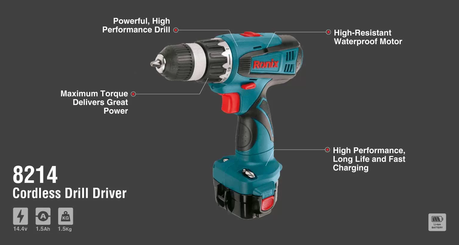 دارای 2 عدد باطری مجهز به سری پیچگوشتی دو سر مجهز به باطری Ni-Cd ساخت تایوان دارای سه نظام اتوماتیک تمام فلزی دارای کیف BMC مقاوم در برابر ضربه استفاده از کلید ضد غبار با کیفیت مطابق با استاندارد TUV مجهز به چراغ LED جهت کارکرد بهینه در محیط های کم نور و تاریک دارای شارژر مجهز به بورد الکترونیکی پیشرفته دارای قطع کن هوشمند مجهز به گیربکس دو دور صنعتی جهت افزایش اثر بخشی کارکرد حین پیچ کاری و سوراخکاری در صنایع مختلف دریل پیچ گوشتی شارژی 14.4 ولت مجهز به موتور پر قدرت ساخت ژاپن افزایش کارایی و عمر طولانی عملکرد دستگاه
