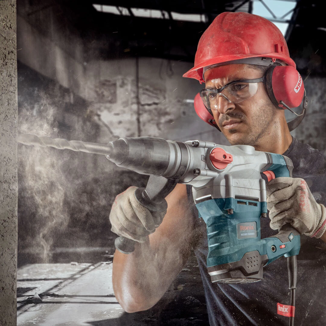 این سیستم ضدلرزش دوبل به علاوه دسته جانبی 360 درجه آنتی شوک تعبیه شده بر بدنه، لرزش حاصل از 3600 ضربه در دقیقه را تا حد بسیار زیادی کنترل میکند و مانع از لرزش دریل در دست شما میشود. دسته این دریل بتن کن نیز از Rubber باکیفیت پوشیده شده که ضد لغزش و تعریق بوده و از حرکت دستگاه در دستان کاربر جلوگیری میکند. این ابزار همراه با متعلقاتی از جمله یک ظرف گریس، یک میله تنظیم عمق، یک دسته جانبی طراحی شده توسط رونیکس و یک کیف برزنتی شامل مته های کاربردی پنج شیار به بازار عرضه میشود.