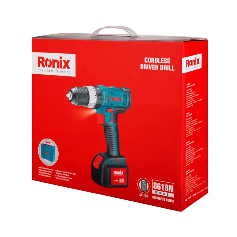در واقع N8618 دریل قدرتمندی مجهز به سه نظام تمام فلزی اتوماتیک 10 میلی متری با سه عملکرد مجزا از هم است. این دریل سوراخ کاری، پیچ کاری و سوراخ کاری چکشی را در دو دور سرعت متفاوت (صفر تا 400 دور در دقیقه و صفر تا 1500 دور در دقیقه) انجام می دهد که این قابلیت تنظیم سرعت در دو حالت کم و زیاد و تنظیم گشتاور با استفاده از ترکمتر 21 حالته، احتمال ورود آسیب به سطح کار یا خود دستگاه را تا مقدار قابل توجهی کاهش داده و به کاربر اجازه می دهد تا از متراکم ترین سطوح عبور کرده یا پیچ های سفت و زنگ زده را به راحتی باز و بسته کند.