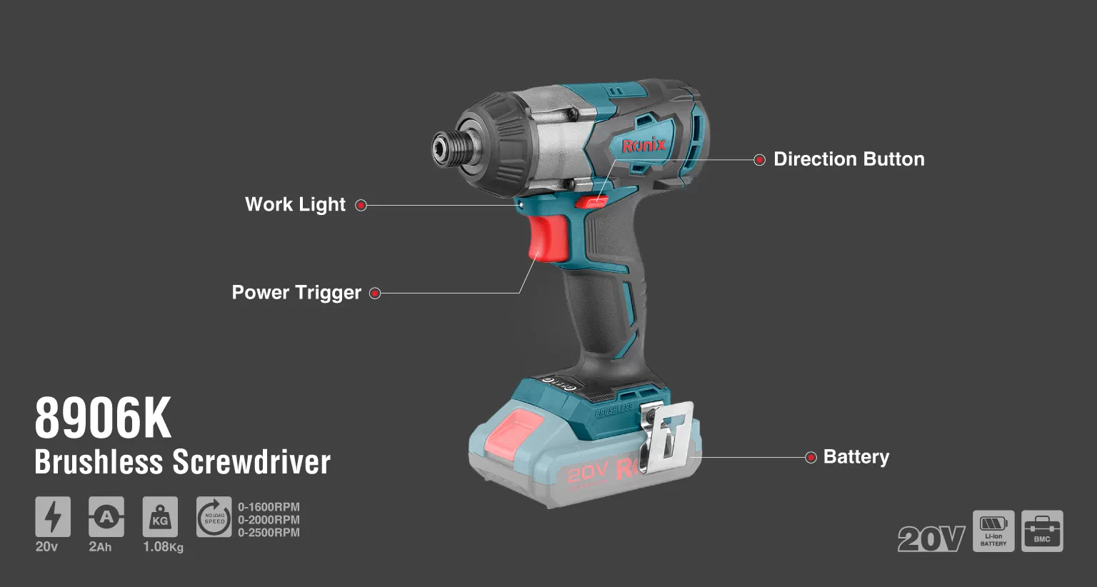برای آشنایی بیشتر با مشخصات کیت پیچگوشتی شارژی براشلس 20 ولت رونیکس مدل 8906k بخش توضیحات محصول را بخوانید.