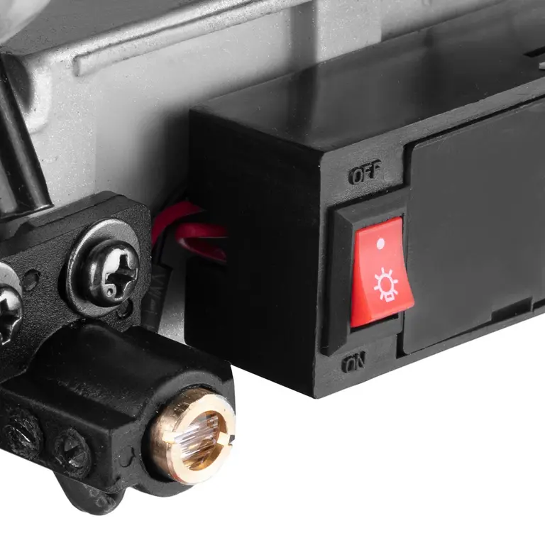 طراحی هوشمندانه، ارگونومیک، سبک و جمع و جور؛ 20.7 کیلوگرمی؛ سهولت جابهجایی و کاربرد دستگاه در طول ساعات متمادی عملیات برش؛ ریلهای کشویی به منظور افزایش ظرفیت برشکاری؛ صفحهی عریضشونده مناسب برای ایجاد برشهای متوالی در قطعات بلند MDF؛ دستهی D شکل افقی با هدف سهولت انجام عملیات برشی؛ خط لیزر برای افزایش دقت برشکاری