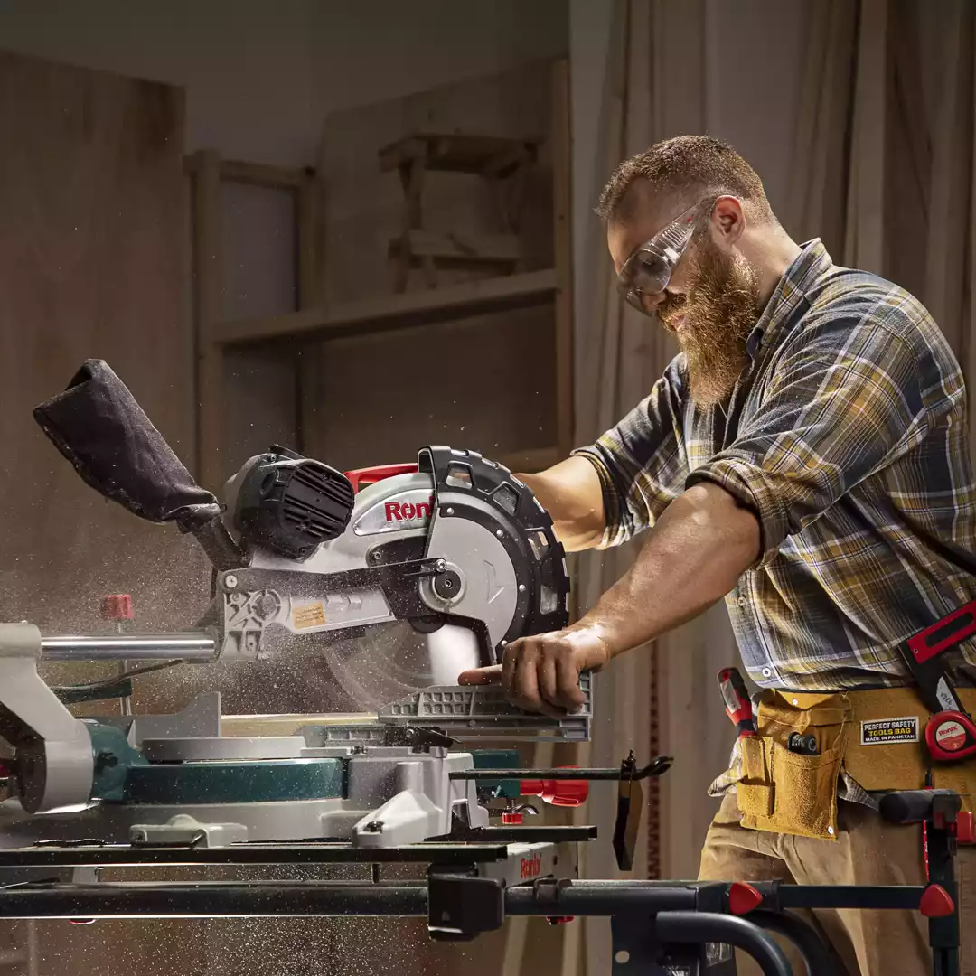 دارای گونیای مدرج و گونیای متحرک برای تنظیم زوایای برش و افزایش دقت کار