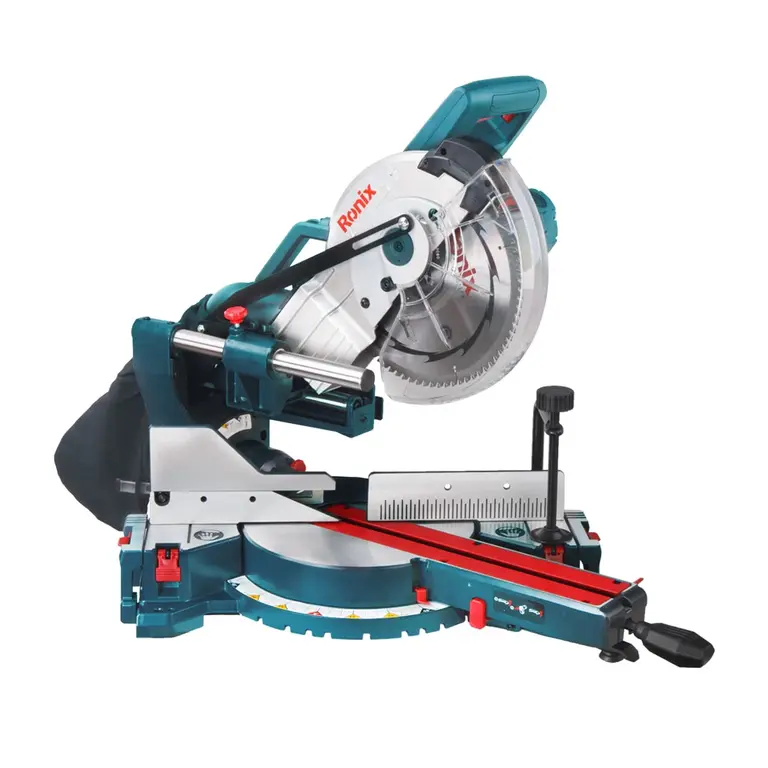 - مجهز به سیستم قفل کن پیشرفته و سریع میز برش در 9 زاویه کاربردی جهت انجام برش های بازویی و میزی با نهایت دقت