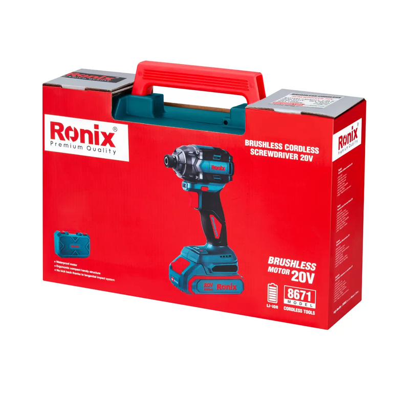 این پیچگوشتی شارژی رونیکس مجهز به موتور قدرتمند براشلس است که گشتاور 230 نیوتنمتر و سرعت 3300 دور در دقیقه را برای بستن و بازکردن انواع پیچها ایجاد میکند. همچنین، نرخ ضربه در این پیچگوشتی شارژی برابر با 4500 ضربه بر دقیقه است.
