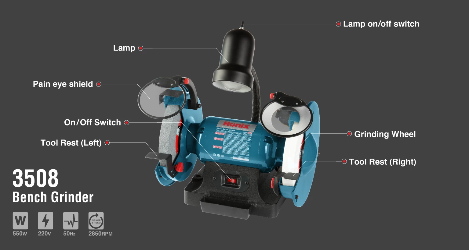 چرخ سنباده 200 میلی متری 3508، یکی از ابزارآلات برقی این کارخانه است که با کیفیت مطلوبی تولید می شود. این چرخ سنباده، دارای یک موتور 550 واتی، با سرعت ثابت 2850 دور در دقیقه در حالت آزاد و بسیار کم صدا است که برای تراش فلزات و سنگ ها مناسب است.
