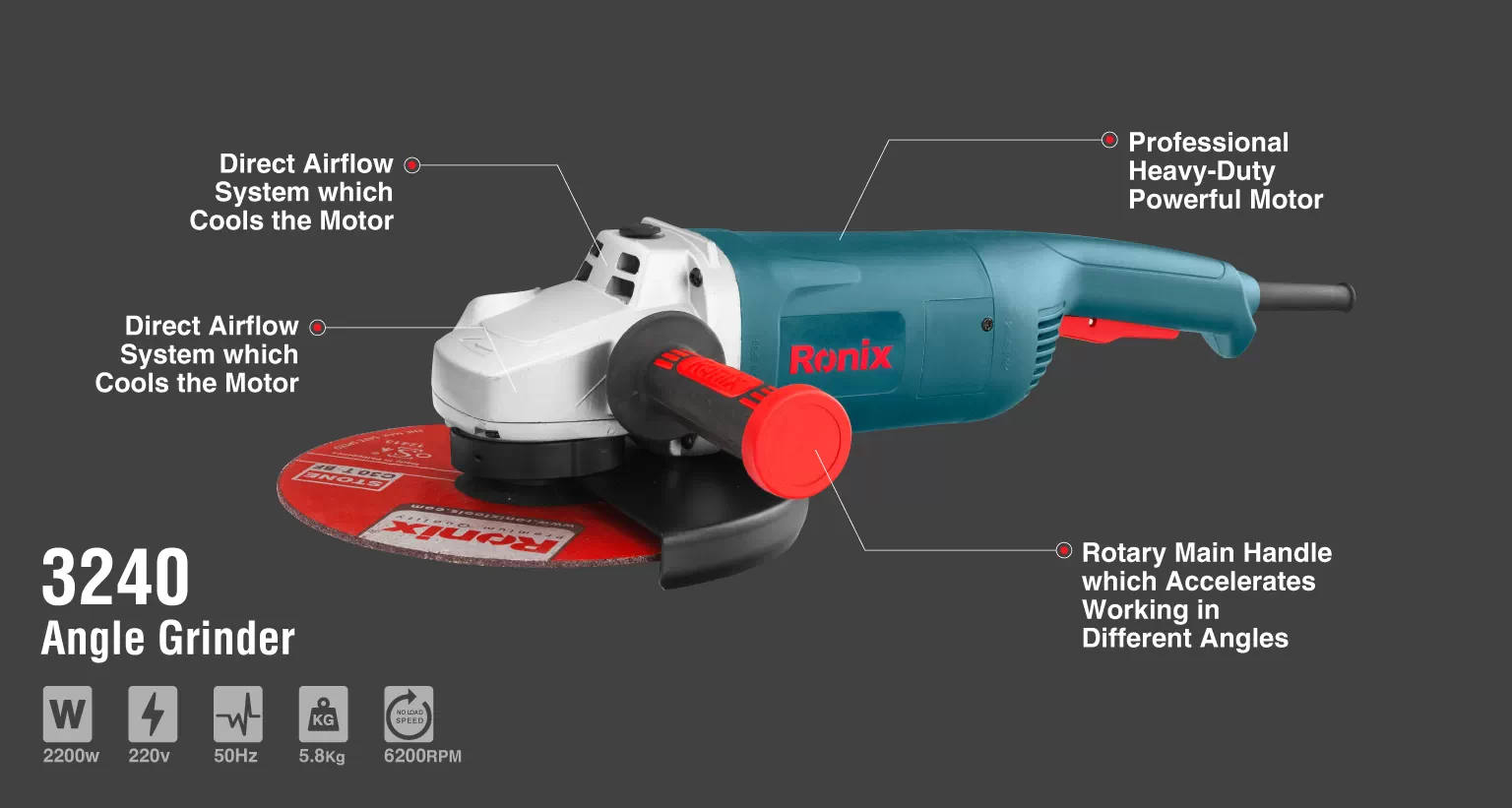 ابزارهای صنعتی بعد از ساعت ها استفاده مداوم به شدت گرم می شوند. گرمای تولید شده از حرکت موتور موجب آزار کاربر و آسیب به خود دستگاه میشود. فرز سنگبری 3240 رونیکس اما با داشتن سیستم گردش هوای داخلی پیشرفته، هوای گرم به وجود آمده را از طریق شیارهای روی بدنه به بیرون میراند و موجب خنک شدن موتور میشود. همچنین طراحی منحصربفرد در قسمت پروانهای آرمیچر گردش هوای داخل دستگاه را بهبود می بخشد و موجب افزایش زمان کار مستمر فرز و عمر موتور نیز میشود.