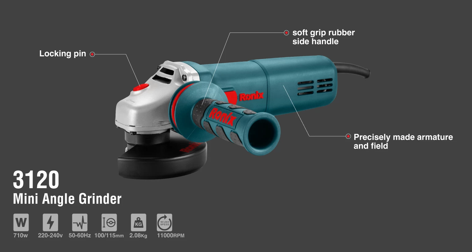 + مینیفرز برقی 710 وات رونیکس مدل 3120: موتور قدرتمند؛ بدنه ارگونومیک؛ صفحه برش 100/115 میلیمتری