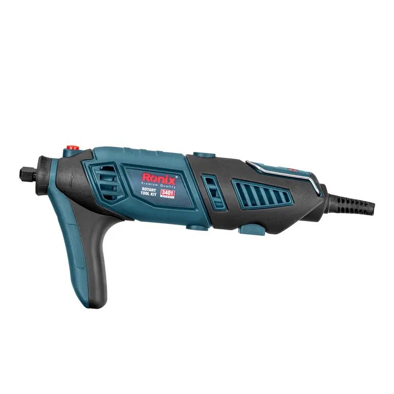 فرز مینیاتوری 3401 رونیکس، به یک موتور قدرتمند 170 وات مجهز است. این دستگاه، از سیستم تغییر دور دیجیتال و بورد الکتریکی مقاوم بهره میبرد. سرعت موتور با کلیدهای مثبت و منفی دیمر در محدوده 8000 تا 35000 دور در دقیقه تنظیم میشود. طراحی ابزار ارگونومیک بوده و با برخورداری از دسته جانبی، قدرت مانور بالاتری را به شما میبخشد تا به صورت ثابت نیز بتوانید از آن در مصارف بلندمدت استفاده کنید. ابتدا و انتهای 3401 با روکش سیلیکونی پوشانده شده است.