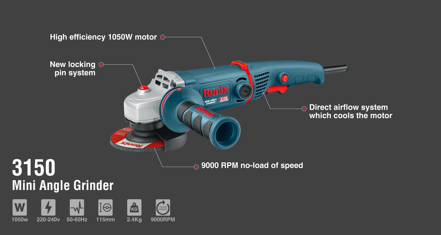 -دارای دسته جانبی ضد لرزش طراحی شده توسط رونیکس با قابلیت نصب 2 طرفه جهت به حداقل رساندن خستگی کاربر هنگام فعالیت و افزایش دقت عملکرد محصول