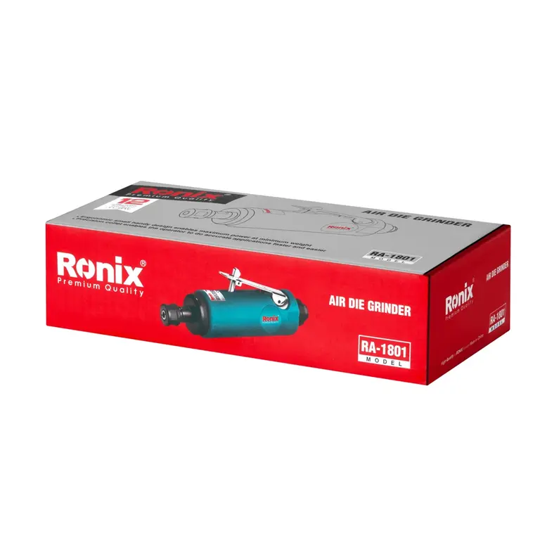 فرز انگشتی بادی RA-1801 رونیکس برای ارائه بیشترین فشار در کمترین وزن از دستگیرهای ارگونومیک بهره میبرد. کولت دقیق این دستگاه برای در برگرفتن طیف گستردهای از ابزارآلات به منظور انجام کارهای مختلف کاربرد دارد. همچنین به کمک هوایی که توسط منبع توان برای حرکت درآوردن دستگاه استفاده میشود، خنکاری دستگاه صورت میگیرد.