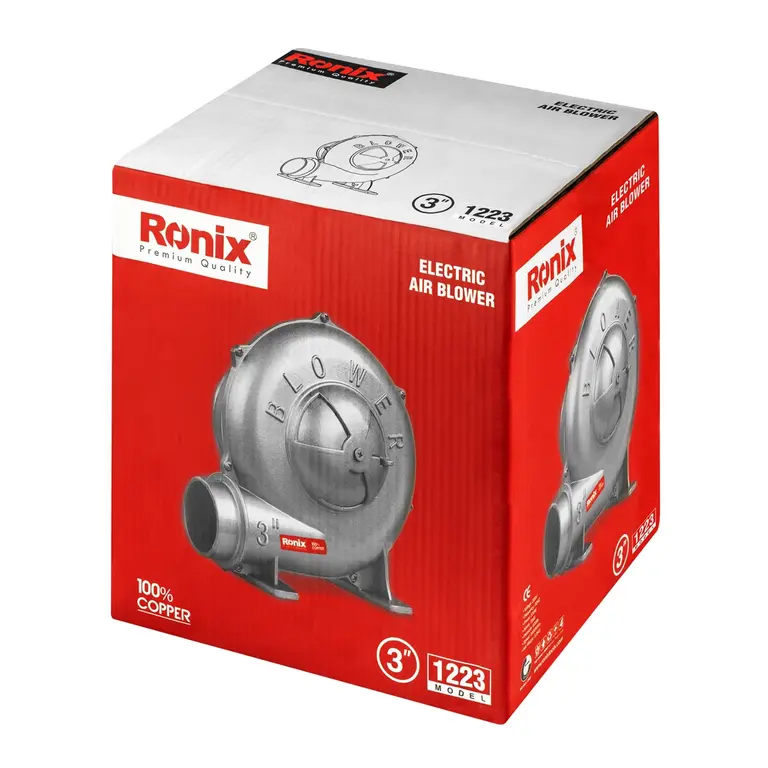 دم برقی رونیکس مدل 1223 دستگاهی است که برای تولید باد با حجم بالا به کار می رود. تولید فشار بالای باد، جریان یکنواخت و پرقدرت هوا، در کنار زیبایی، گرم شدن اندک دستگاه، وزن کم و مصرف بهینه انرژی از ویژگی های این دستگاه می باشد. دم برقی معمولا برای ایجاد شعله و احتراق استفاده می شود و در منزل، رستوران ها، کوره ها و... کاربرد دارد. همچنین برای خنک سازی و جریان پیدا کردن هوا در مکان های مختلف به کار می رود.