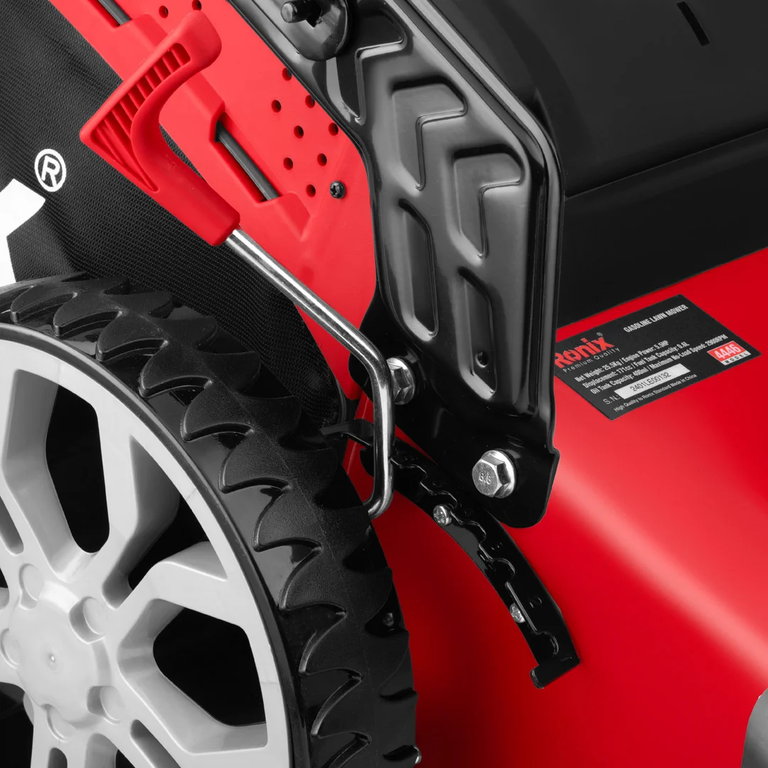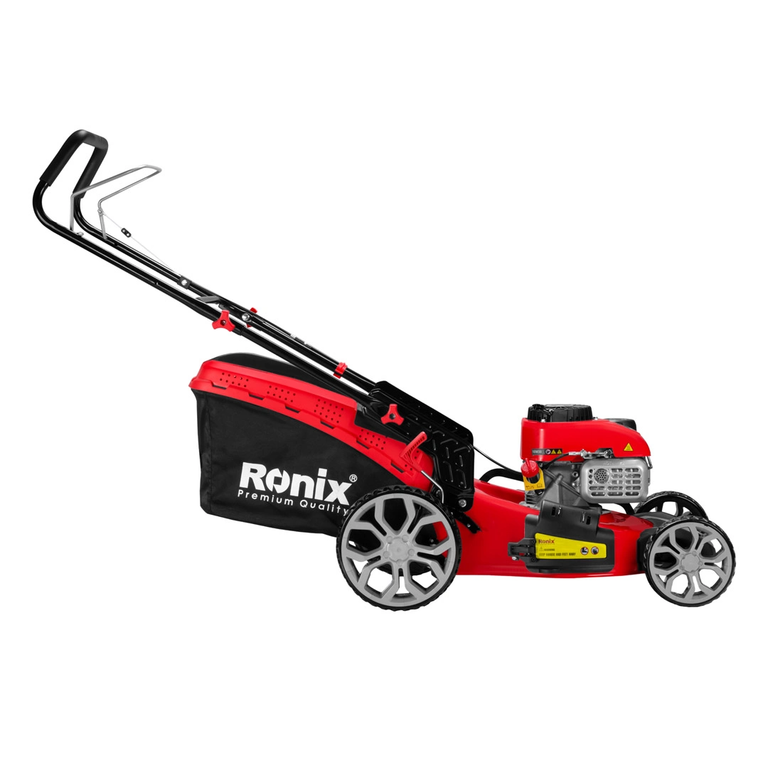 - ماشین چمن زنی رونیکس با 3 حالت طول دسته قابل تنظیم و 6 درجه جهت تنظیم شیب دسته مجهز می باشد