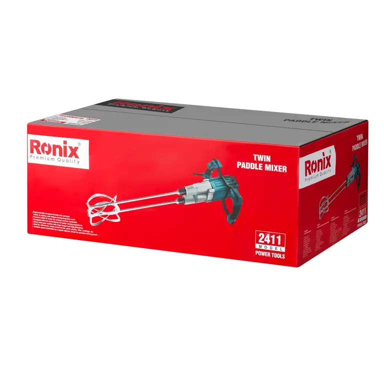 موتور گیربکسی 2050 واتی با استفاده از ولتاژ 220-240 کار میکند و سرعت آن در حالت آزاد به 840 دور بر دقیقه میرسد؛ این ویژگیها میکسر برقی رونیکس را به ابزاری با گشتاور بالا برای استفاده در صنایع مختلف تبدیل کرده است.