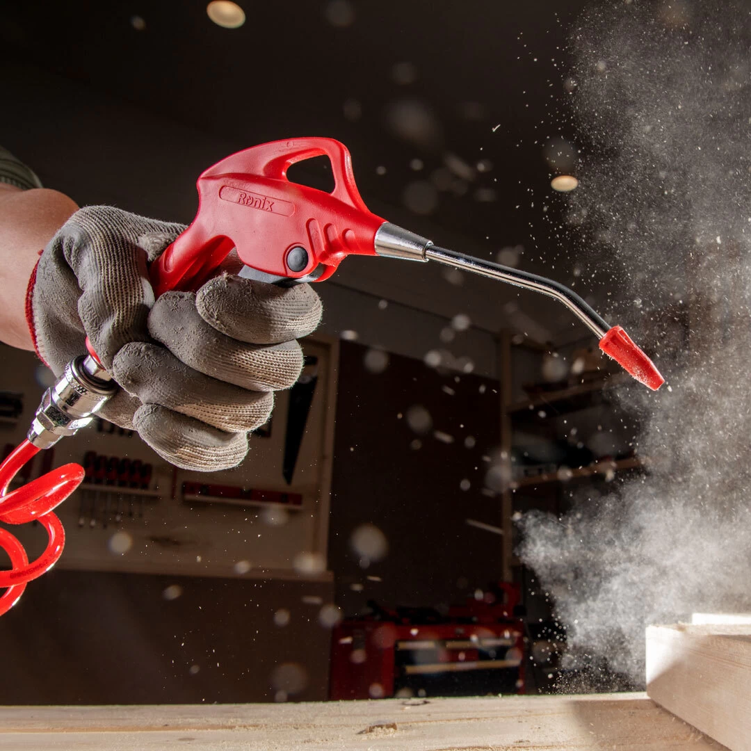 - ابزاری قدرتمند با فشاری بالغ بر 10 بار که زدودن گرد و غبار و پاک کردن هرگونه ضایعات را از سطح کار امکانپذیر میکند.