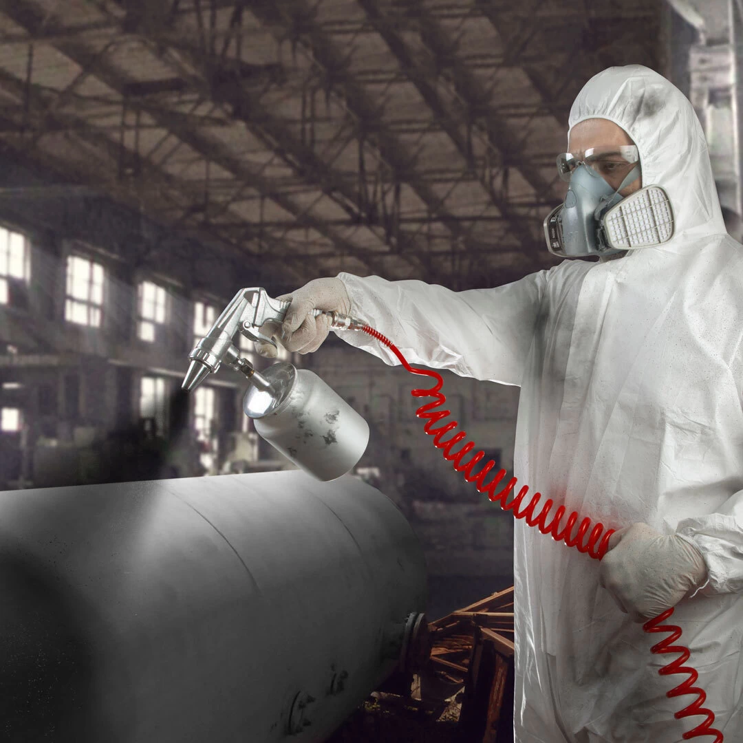 - قیرپاش بادی صنعتی، دارای سوزن برنجی، و در نتیجه ارائه ضخامت پاشش یکنواخت