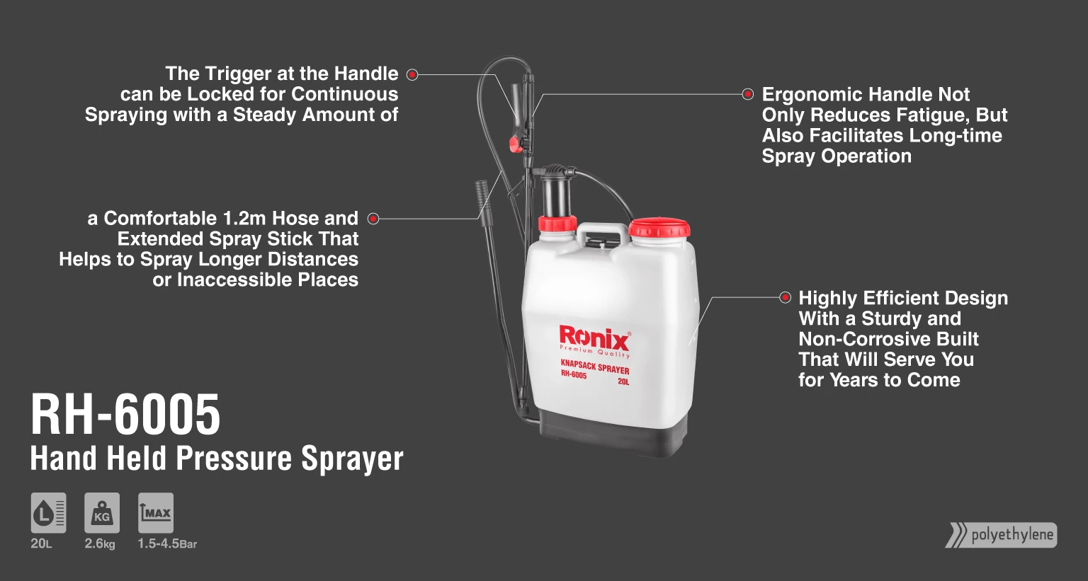 سمپاش دستی RH-6005 رونیکس محصولی باکیفیت و کابردی است که کاربران را به نتیجه دلخواه میرساند.
