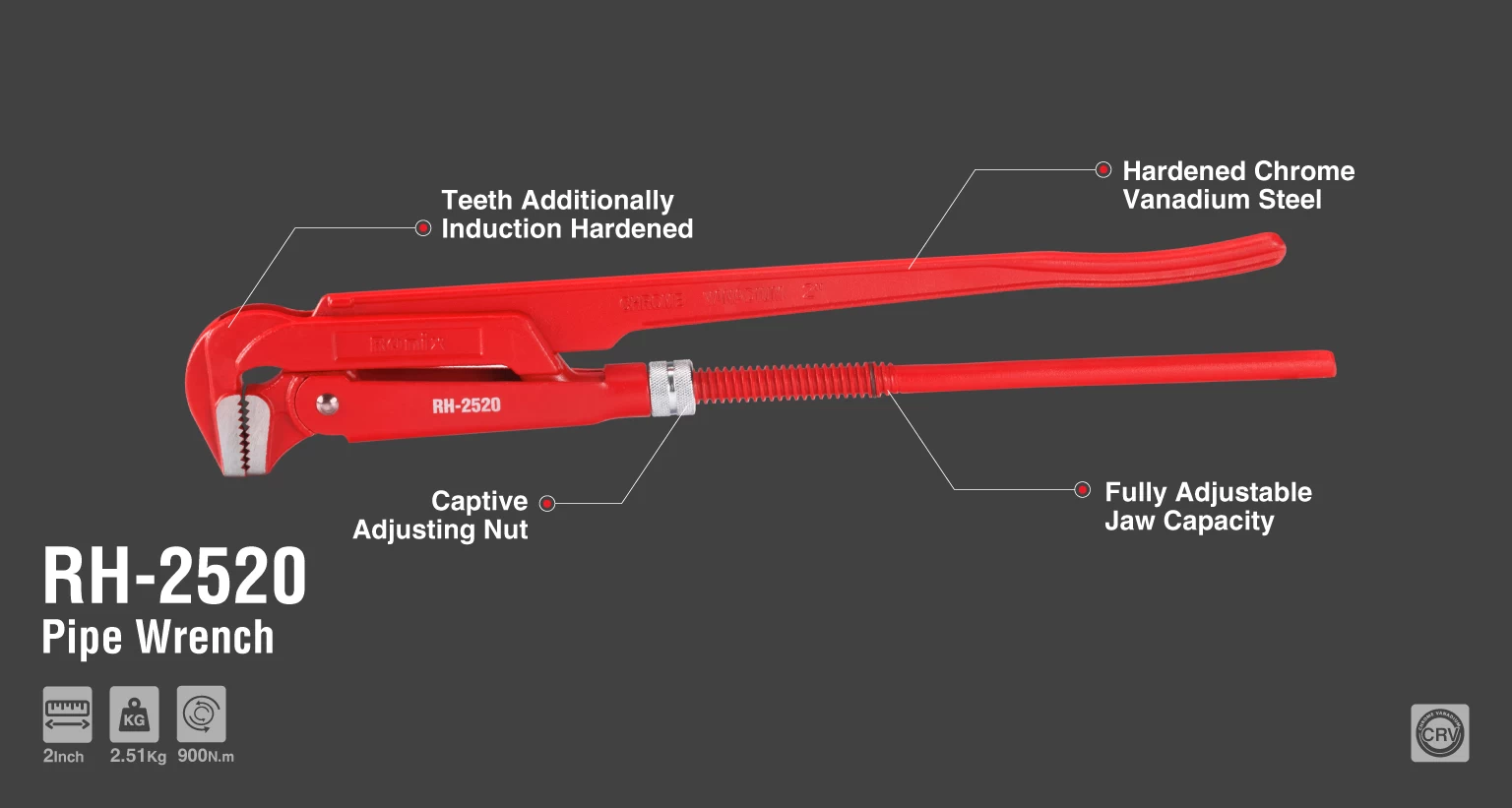 یکی از بهترین آچارهای دو دسته تولیدشده در بازار ابزار ایران متعلق به رونیکس و محصول RH-2520 از این برند است. این ابزار 2 اینچی، برای کار با لولهها و اتصالات تا 67 میلیمتر طراحی شده است.
