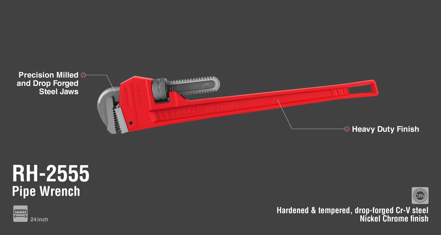 آچار لولهگیر یا آچار شلاقی، آچاری پرکاربرد برای تمام لولهکشها است. آچار لولهگیر سایز 24 اینچ رونیکس مدل RH-2555 ابزاری باکیفیت ساخت بالا، طراحی دقیق و مواد اولیه مقاوم است. این محصول دارای دندانههای مستحکم و باکیفیت جهت گیرایی عالی لوله است. در بخش توضیحات محصول، بیشتر با این ابزار آشنا شوید.