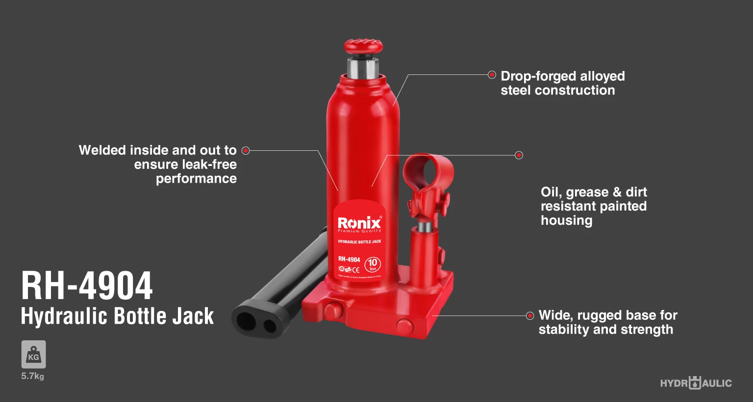 یکی از ابزارهای مناسب برای بلندکردن وسایل نقلیه و مصالح ساختمانی، جک روغنی یا جک هیدرولیکی است. به دلیل کاربردهای این ابزار، برندهای زیادی در حال تولید جک روغنی هستند. برند رونیکس تولیدکننده انواع جک روغنی در اندازههای مختلف است. یکی از بهترین تولیدات این شرکت، جک روغنی 10 تن RH-4904 رونیکس است. برای آشنایی بیشتر با این ابزار رونیکس، به بخش شرح جزئیات مراجعه کنید.
