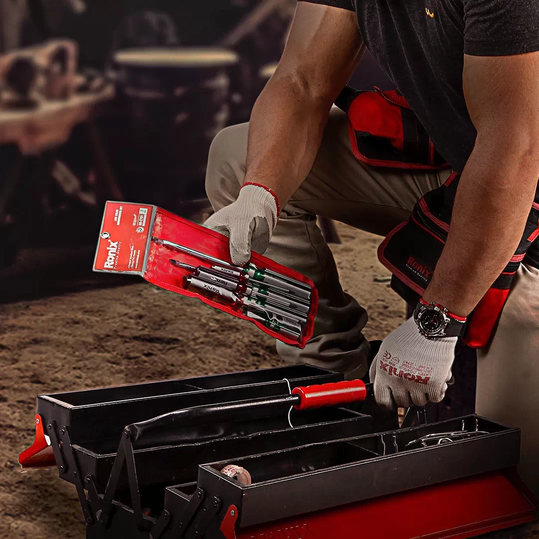 این مجموعه پیچ گوشتی 7 عددی، مجهز به دسته کریستال هستند. طراحی حرفهای رونیکس برای دستهها بین سرعت و گشتاور در اتصالات مختلف تعادل ایجاد میکند.
