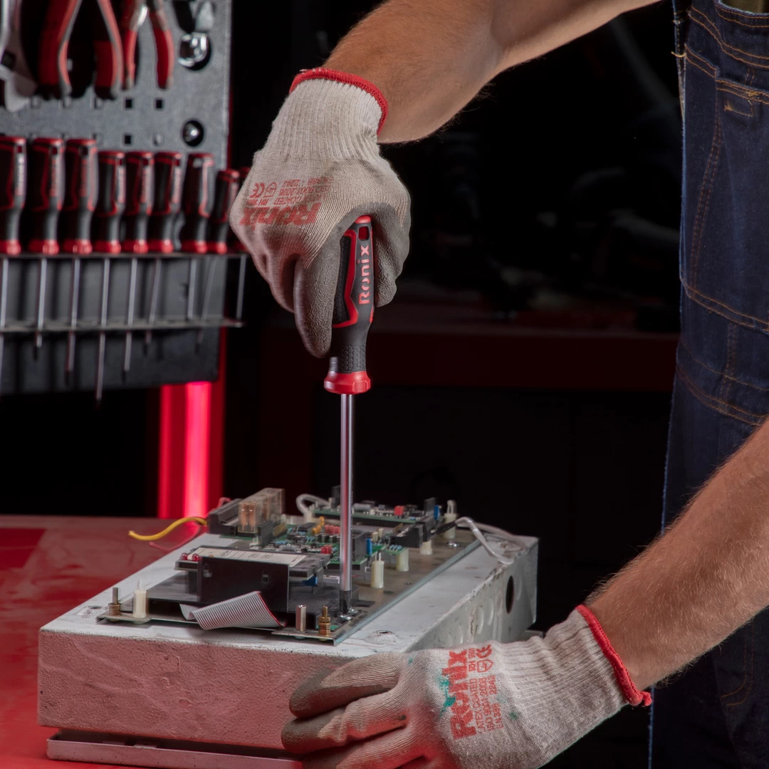 دسته با روکشی از جنس پلاستیک TPR برای کنترل بهتر ابزار و با طراحی حرفهای رونیکس که تعادل بین سرعت و گشتاور را در اتصالات مختلف ایجاد میکند.