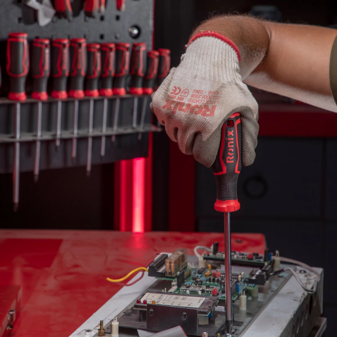 دسته با روکشی از جنس TPR برای کنترل بهتر ابزار و با طراحی حرفهای رونیکس که تعادل بین سرعت و گشتاور را در اتصالات مختلف ایجاد میکند.