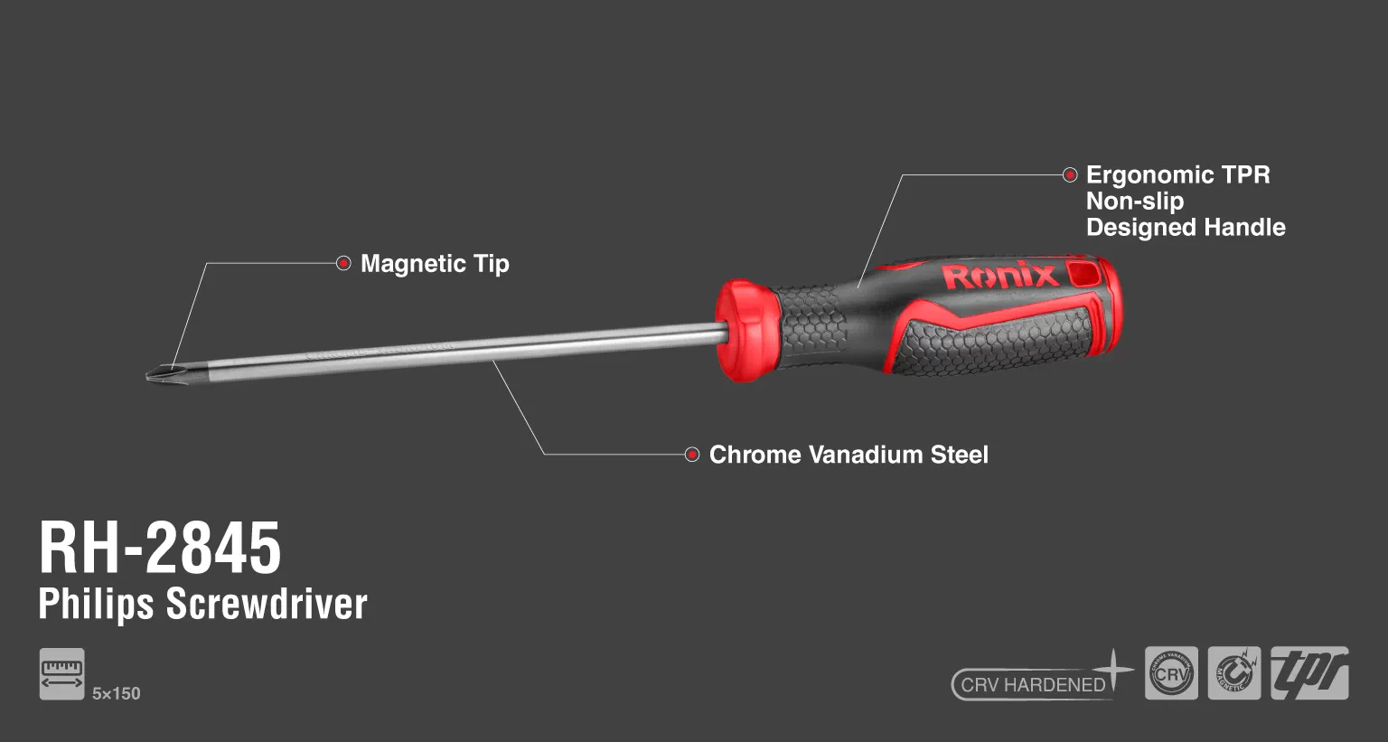 + پیچ گوشتی چهارسو RH-2845 رونیکس از چه بخشهایی تشکیل شده است؟