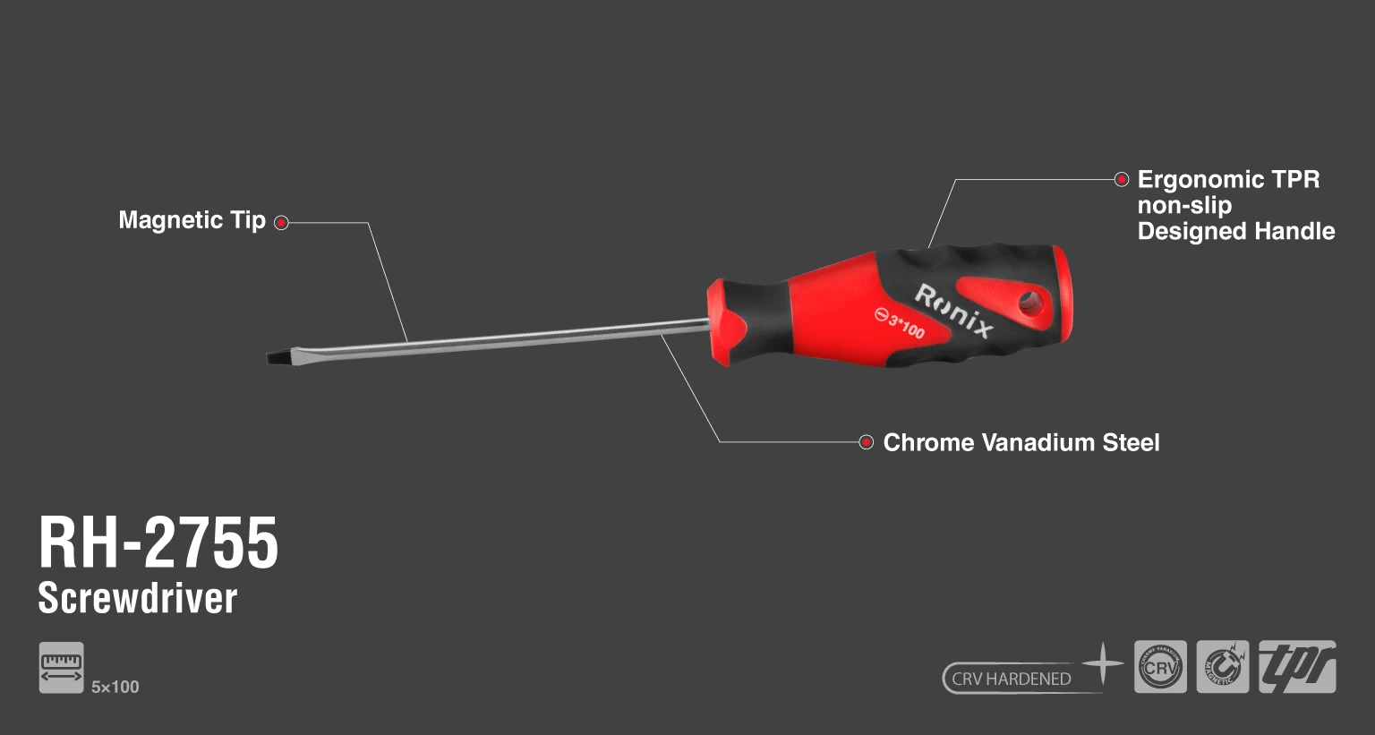طراحی این پیچ گوشتی به گونه ای است که در استفاده های طولانی مدت کاربری راحتی را برای افراد فراهم می کند. همچنین دسته ضد لغزش آن با برخورداری از روکش TPR کنترل و دقت بالایی را در حین کار به وجود می آورد. از دیگر مشخصات مدل RH-2755 رونیکس پوشش اکسید سیاه در قسمت نوک این ابزار است که باعث حافظت نوک پیچ گوشتی در برابر خوردگی و زنگ زدگی شده و طول عمر بالای آن را تضمین می کند.