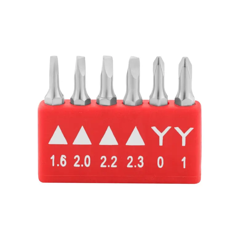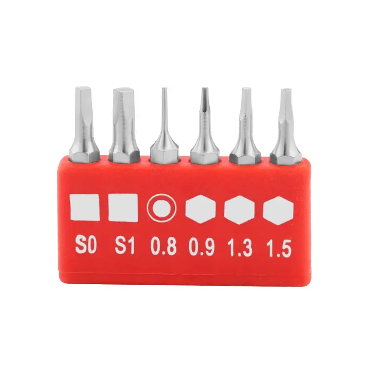 PH0,PH00,PH000,PH1, SL1 , SL1.5 , SL2 , SL 2.5, SL 3, T3 , T4 , T5 , TH6,TH7,TH8,TH9,TH10,TH15, P2 , P5 ,P6, H0.9,H1.3,H1.5,H2.0,H2.5,H3.0, Y0, Y1, Nut Driver 2.0/3.0/3.5/4.0/4.5/5.0, S1 , S0, pin power bit 0.8, TA1.6;TA2;TA2.2;TA2.3; دسته 4.0*115, میله رابط 4.0*100,عدد 2 قاب بازکن, 1 عدد قاب بازکن مثلثی, 1عدد پنس, 1 عدد پد مغناطیسی, 1 عدد قاپک |