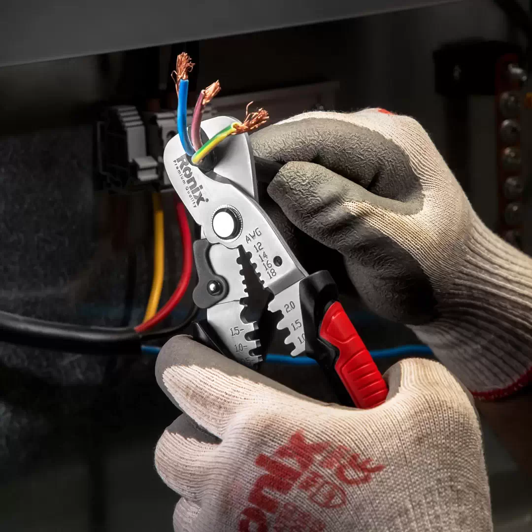 یک ابزار کارآمد چند منظوره برای لخت کردن سیم ها تا قطر 2.0 میلیمتر،برش کابل و سیم تا قطر 16 میلیمتر و پرس کردن سر سیم ها تا سطح مقطع 2 میلیمتر