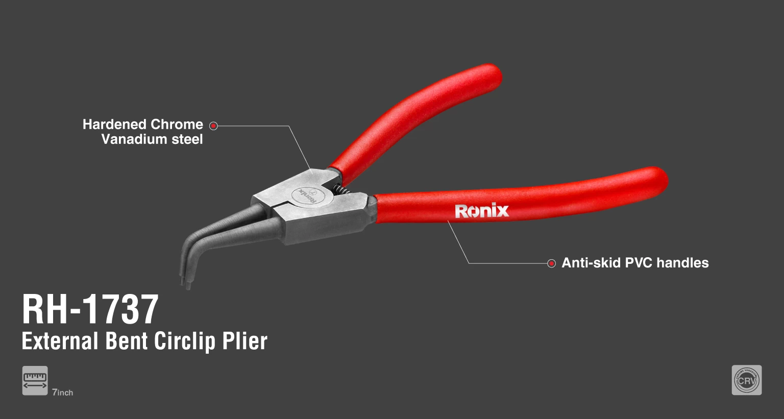 انبر خار بازکن RH-1737 رونیکس برای قراردادن و خارجکردن خارهای فنری از وسایل مختلف طراحی شده است. این محصول از فولاد باکیفیت ساخته شده که موجب افزایش مقاومت و طول عمر ابزار میشود.