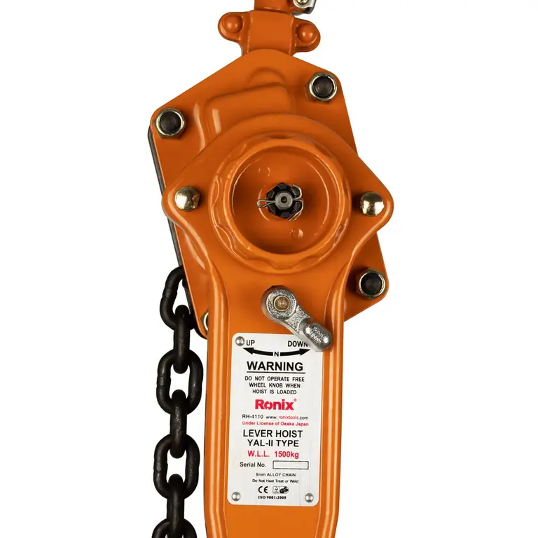 پولیفت مدل RH-4110 رونیکس، از نوع زنجیری بوده و مجهز به یک رشته زنجیر فولادی مستحکم است که برای جابهجایی اجسام مورد استفاده قرار میگیرد. این ابزار دارای بدنهای تمامفلزی و مقاوم در برابر ضربه است که میتواند اجسامی به ظرفیت 1.5 تن را جابهجا کند.