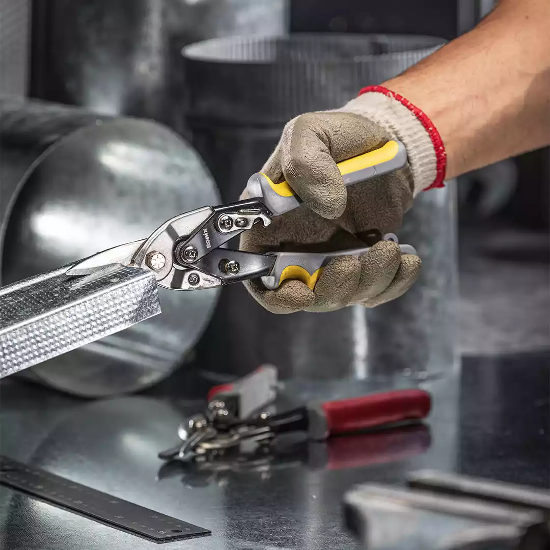 نوع کاربری قیچیهای ورقبُر با کد رنگ دستههای آنها مشخص میشود. قیچیهای ورقبر با دستهی زردرنگ، مستقیمبر هستند. قیچیهای با دسته قرمز، چپبر هستند و قیچیهای راستبر نیز دسته سبزرنگ دارند. قیچی ورقبر مستقیمبر RH-3904 رونیکس با دسته TPR زرد، ابزار دستی قدرتمندی است که قطعات فلزی نازک را برش میزند. این قیچی به خاطر قدرت بالای اهرمهای آن، کارایی و عملکرد خارقالعادهای را به کاربران ارائه میدهد. همچنین، دسته آن دارای طراحی ارگونومیک بوده و با روکش لاستیک گرمانرم TPR که یک پلیمر مهندسیشده و ترکیبی از پلاستیک و لاستیکها است، پوشیده شده است. استفاده از TPR در دسته قیچی باعث میشود که بتوانید برشهای دقیقی را با این ابزار ایجاد کنید. برای کسب اطلاعات بیشتر در مورد این محصول رونیکس، بخش توضیحات محصول را بررسی کنید.