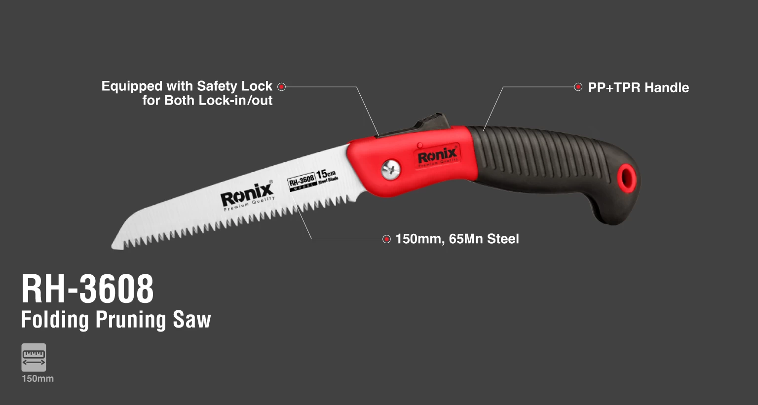 رونیکس، مجموعه ابزارهای باغبانی خود را همانند سایر ابزارآلات خود، با کیفیت و تنوع بسیار بالا تولید کرده و همواره نیازهای کاربران مختلف را در طراحی، تولید و عرضه‌ محصولات خود در نظر می‌گیرد.  اره باغبانی RH-3608 رونیکس، یکی از ابزارآلات مهم و پرکاربردی است که در فعالیت‌های کشاورزی و باغبانی مورد استفاده قرار می‌گیرد.