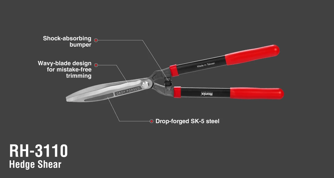 قیچی شمشادزن رونیکس مدل RH-3110 نوعی قیچی باغبانی است که از آن برای هرس و شکلدهی به شمشاد و گیاهان تزئینی استفاده میشود. طول این ابزار 60 سانتیمتر بوده و مجهز به تیغه باکیفیت از جنس فولاد ضد زنگ است که حداکثر تیزی و دوام را به همراه دارد.